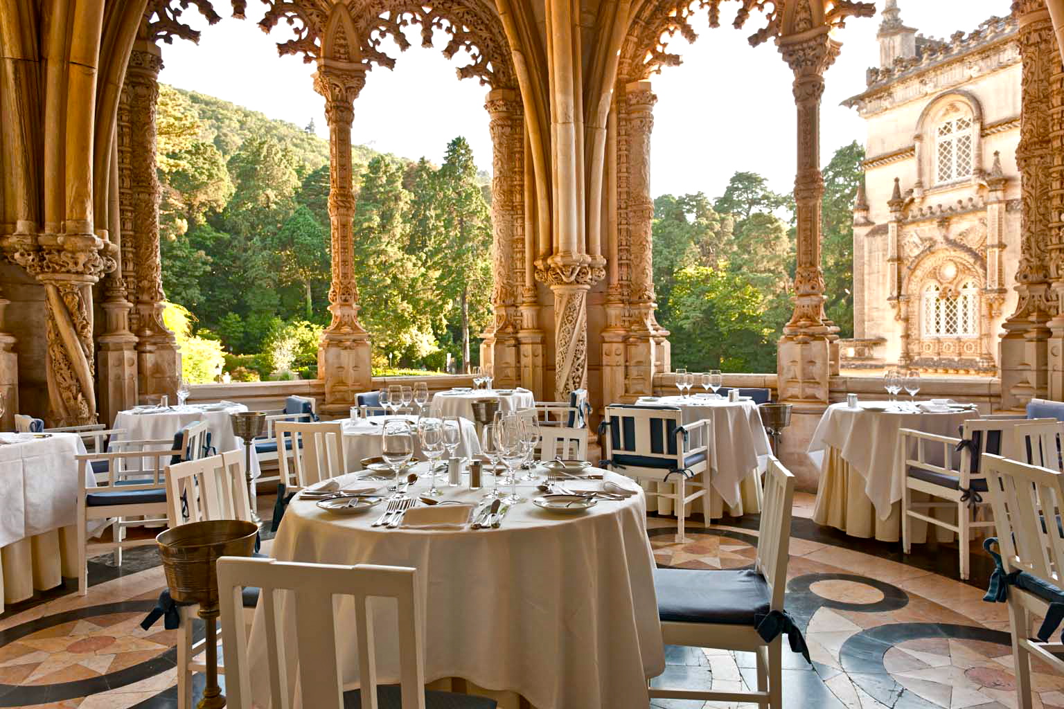 Um palácio real à sua espera- Autêntico palácio de conto de fadas em plena floresta encantada. No fabuloso e lendário palácio construído em 1885 para os últimos reis de Portugal está instalado desde 1917 o Palace Hotel do Bussaco, sem qualquer favor um dos mais belos e históricos hotéis do mundo. Localiza-se a norte de Coimbra e a 2h de Lisboa e 1h do Porto, no interior da Mata Nacional do Bussaco, ex-libris botânico e natural de Portugal. Esta imensa floresta, plantada e murada pela Ordem dos Carmelitas Descalços no 1º quartel do séc. XVII para nela instalarem um deserto espiritual de contemplação e reflexão mais perto do Criador, possui espécies vegetais do mundo inteiro, algumas gigantescas - além do célebre e imponente Cedro do Bussaco - e proporciona inúmeros e inesquecíveis passeios pedestres em contacto estreito com a natureza, com passagem por deslumbrantes fontes, ermidas e miradouros. A sua Via-Sacra e o Convento de Santa Cruz conferem igualmente a este local ímpar e bucólico um ambiente raro da maior paz e serenidade. No centro deste conjunto paisagístico e arquitectónico único na Europa, o Palace Hotel, verdadeiro palácio real no mais fascinante estilo neo-manuelino, idealizado pelos últimos Reis de Portugal num rasgo de genialidade autêntica no mais puro estilo romântico dos Saxen-Coburg-Gotha, está sumptuosamente mobilado e decorado com inúmeras obras de arte, magníficos frescos, valiosos quadros e a melhor colecção de painéis de azulejos do séc. XIX representando a Epopeia dos Descobrimentos Portugueses narrada por Camões e a Batalha do Bussaco, da autoria dos maiores mestres, entre demais motivos histórico-culturais portugueses do séc. XIX. De entre os quais são dignos de realçar os incríveis frescos que nos remetem para o ambiente digno de reis e rainhas, além de todo o minucioso e riquíssimo rendilhado em pedra de Ançã, como adorno de fundo a todo o palácio. A majestosa sala de jantar do Palácio, outrora cenário de importantes banquetes reais, é hoje em dia um dos melhores e mais refinados restaurantes de Portugal, quer quanto ao serviço quer quanto às especialidades gastronómicas de autor ao gosto regional e toda a tradição da velha cozinha internacional que propõe e ainda quanto à sua garrafeira própria, constituída pelos exclusivos vinhos do Bussaco de renome mundial, e de referência máxima em todos os principais guias de vinhos internacionais. Uma estadia no Palace Hotel do Bussaco corresponde a uma experiência única que importa não perder. Cabeças coroadas, chefes de estado, políticos, gentes das artes e das letras e do mundo empresarial refugiam-se no Bussaco para apreciados momentos de evasão e de retempero do corpo e da alma. Um espírito único de autenticidade que nos é dado pela floresta circundante e demais características apontadas, criam, a quem alguma vez nele se instalou, uma viva saudade da perfeição encontrada e do recolhimento usufruído. Bem-vindo a uma experiência única que importa ser vivida a todo o custo.