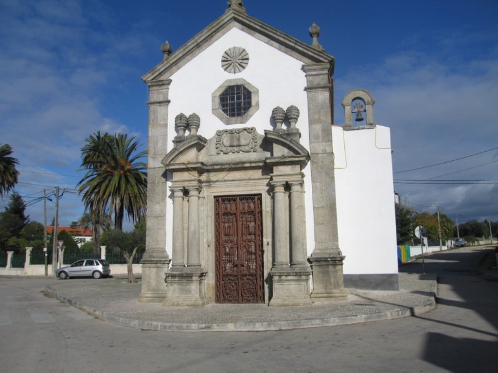 The chapel features a nave and high altar. In its modest interior, stands the seventeenth century altarpiece in polychrome stone of Ançã,. The whole rectable is made from Ançã stone, with five niches separated by columns and fluted pilasters with Corinthian capitals. The middle niche has the image of S. Tomé and in the others are the images of S. João Baptista, S. Tiago, Rainha Santa and an image of the Virgin and Child, identified by Viriato de Sá Fragoso as Nossa Senhora dos Remédios (Our Lady of Remedies). All of them are made of stone and from the 17th century..