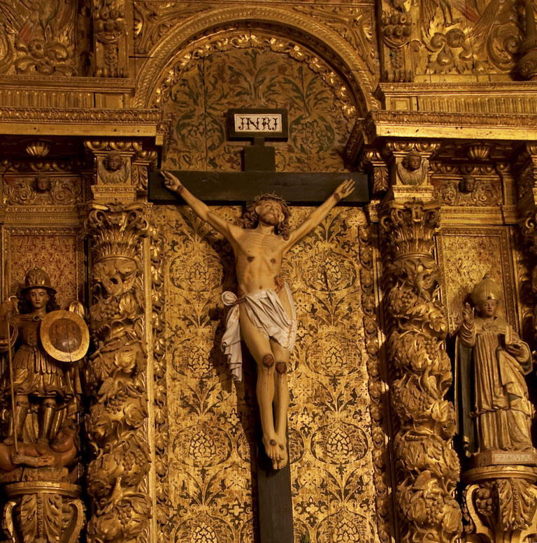 De salientar no seu interior as imagens de S. Miguel Arcanjo, da Virgem do Rosário com o Menino, da Virgem da Assunção e de S. Sebastião. Possui também alguns lanços de talha e relevos magníficos.