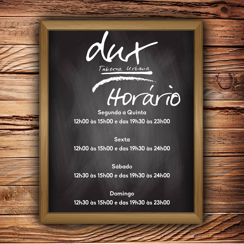 Os restaurantes ´Dux´ são verdadeiras Tabernas Urbanas e ainda que tenham em comum a variedade de petiscos e vinhos, cada espaço tem uma identidade própria. Neles pode provar os mais variados petiscos tradicionais Portugueses, como por exemplo as Pataniscas de Bacalhau ou um delicioso Pica-Pau e também Petiscos de criação como a Farinheira com Pêra Caramelizada, os Cogumelos com Linguiça e Ovo, as Tiras da Vazia com molho de Queijo da Serra entre outros.