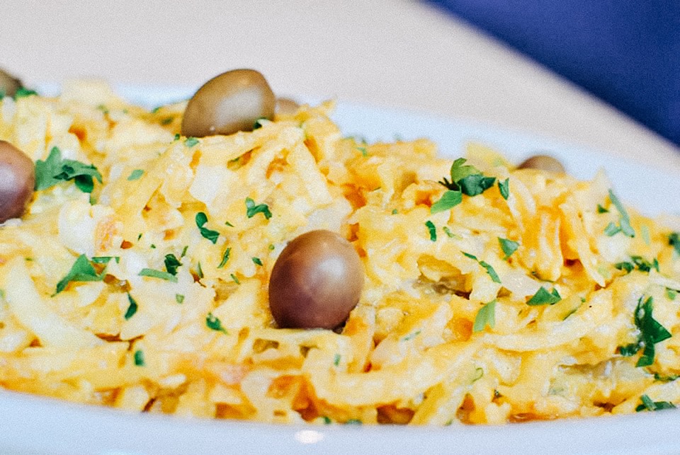 Arroz de Pato à moda antiga, Salada Fria de Bacalhau com Feijão Manteiga, Frango de Caril.