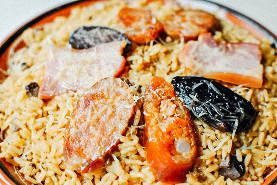 Pataniscas de bacalhau com arroz de tomate, Arroz de Polvo e Lombo de Porco com Batata Doce e Laranja.